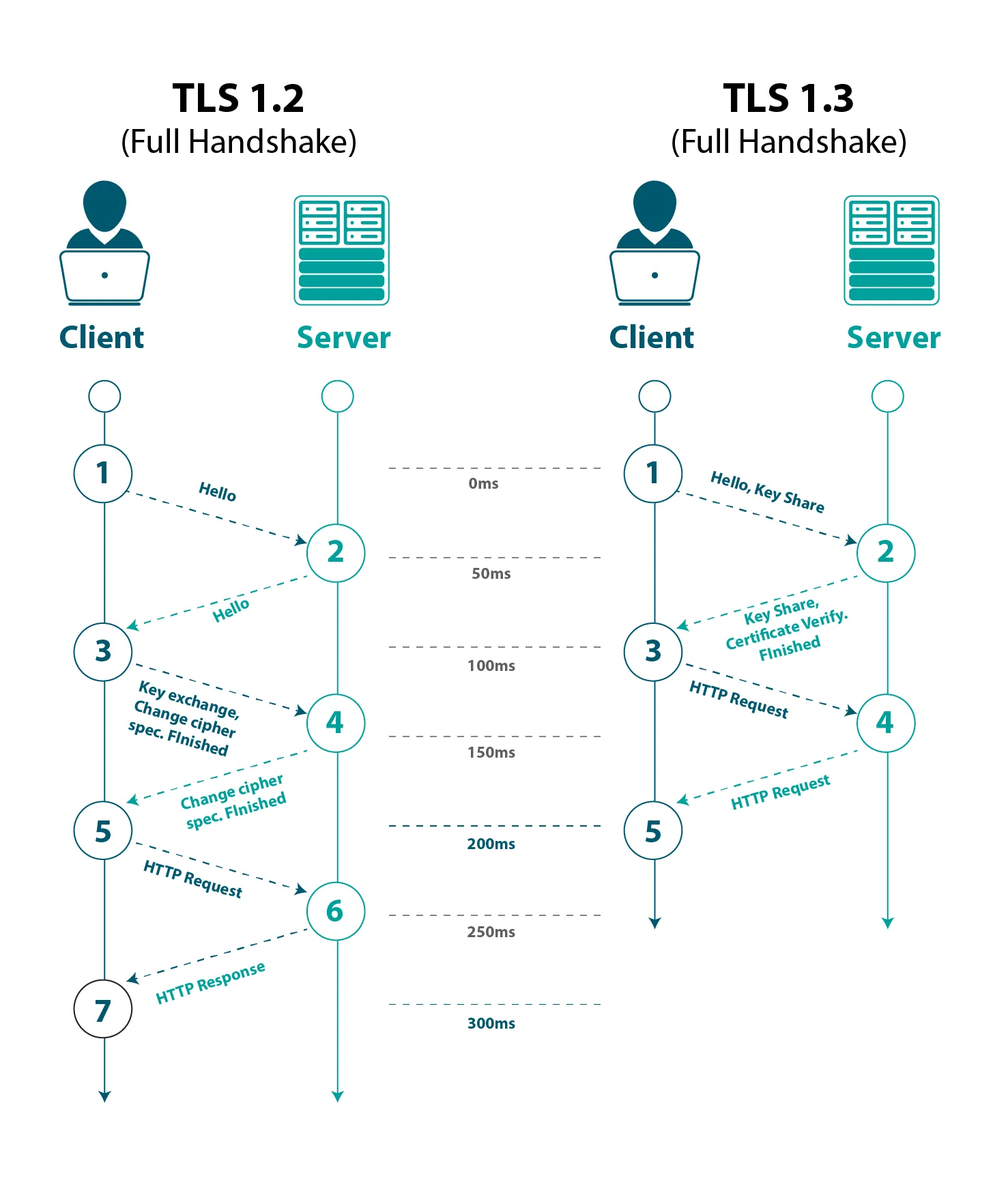 이전까지는 단점이었지만, 과거에 비해 HTTPS의 성능 오버헤드가 크게 개선되었다. 2010년대 초기에는 HTTPS가 성능 저하를 일으킨다는 우려가 있었지만 기술의 발전으로 이러한 문제들은 대부분 해결되었다. 특히 TLS 1.3의 도입으로 초기 연결 시 발생하는 지연 시간이 크게 줄었다. 이전 버전에서는 연결 수립을 위해 추가적인 왕복 통신이 필요했지만, TLS 1.3에서는 핸드셰이크 과정이 최적화되어 이러한 오버헤드가 감소했다.