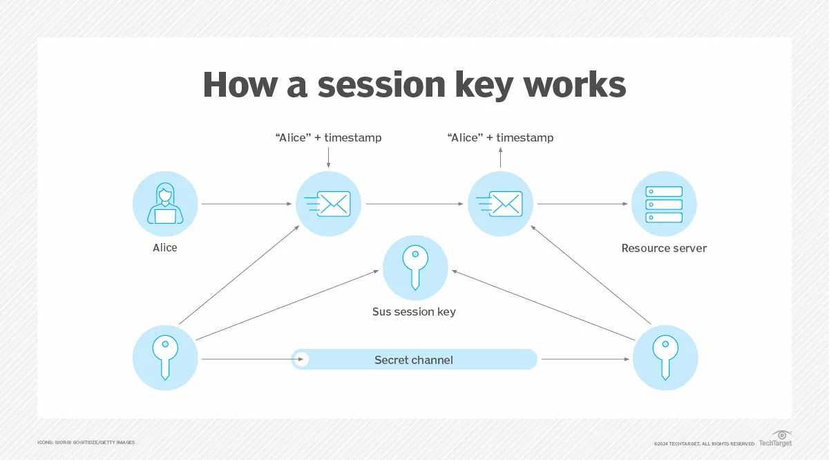 세션 키는 하나의 통신 세션을 위해 무작위로 생성되는 임시 키다. 브라우저가 웹사이트에 접속할 때마다 새로운 세션 키가 생성되며, 해당 세션이 종료되면 그 키는 폐기된다. 이런 방식으로 보안을 강화하는데 만약 한 세션의 키가 노출되더라도 다른 세션의 통신은 안전하게 보호된다.