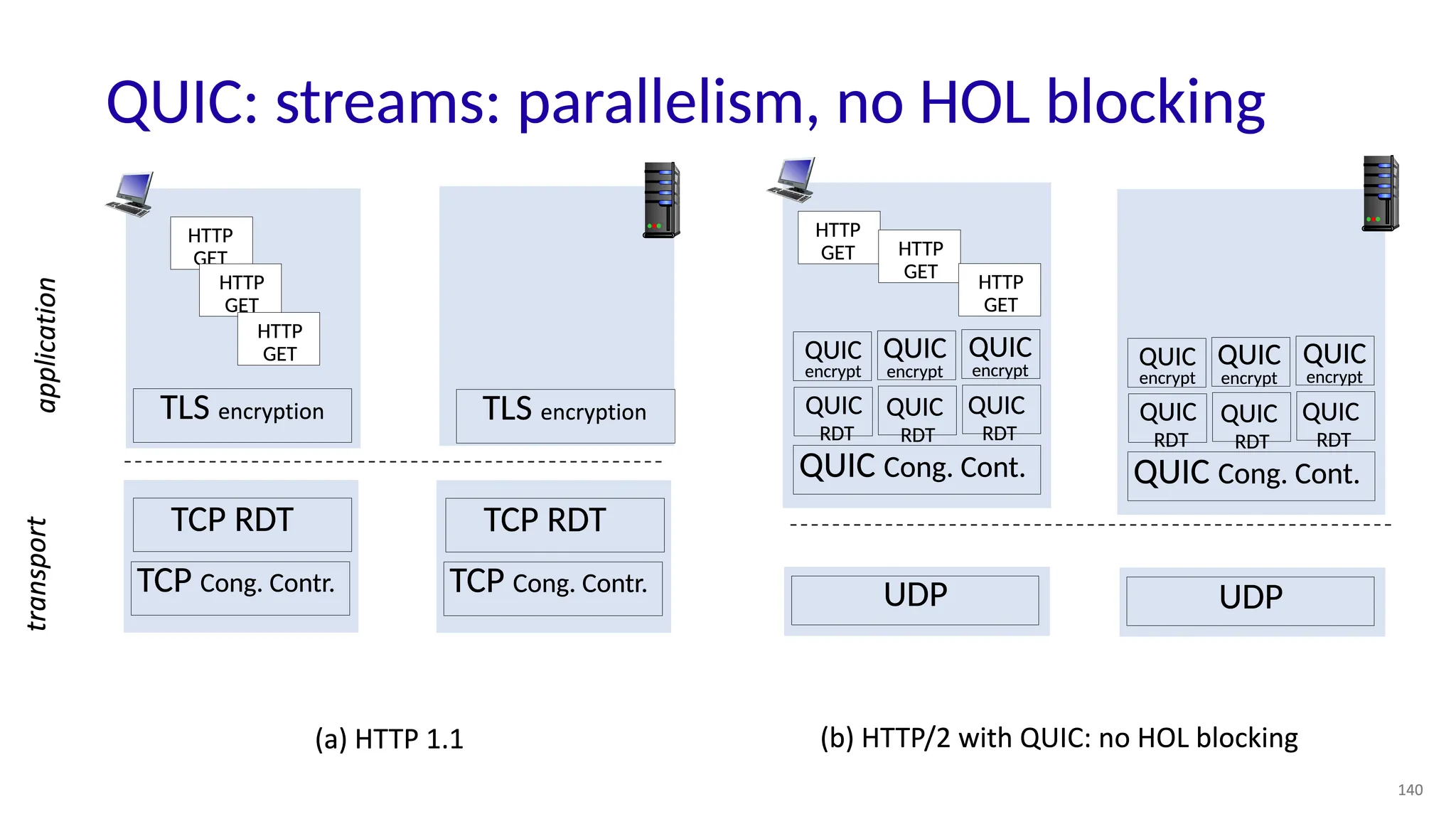 QUIC(Quick UDP Internet Connections)는 UDP를 기반으로 하지만, 자체적으로 TCP와 비슷한 기능들을 애플리케이션 레벨에서 직접 구현하고 있다.